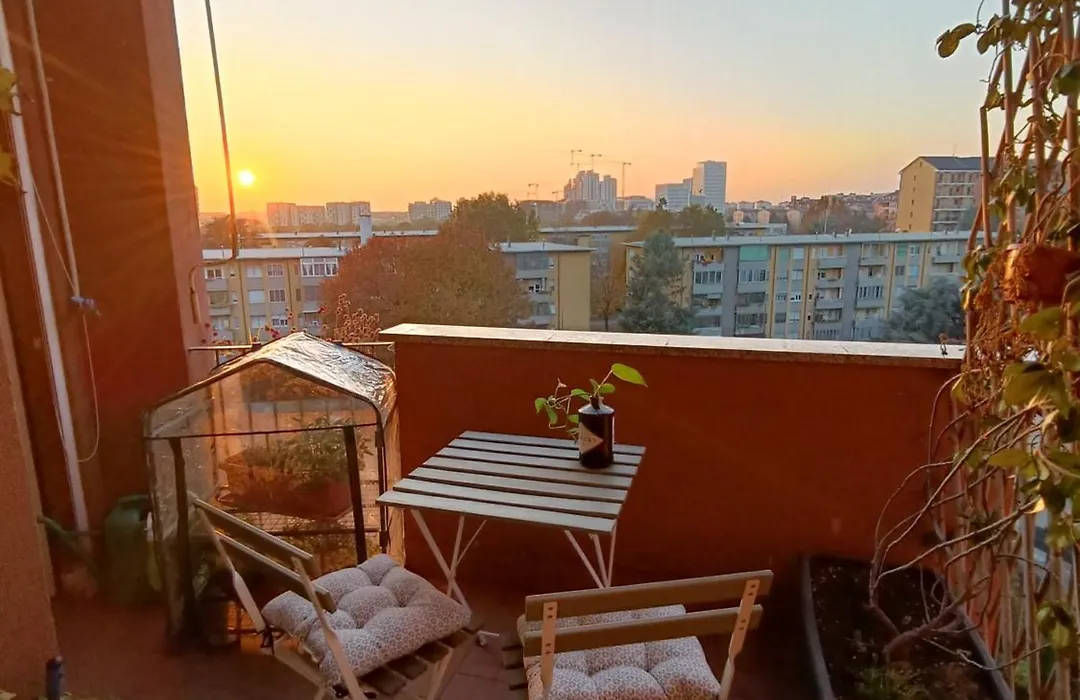 Private Room Talika - Apartment Shared With The Host includes a balcony and overlooks the city. Hairdryers, bath sheets, and slippers are also included in the bathroom.